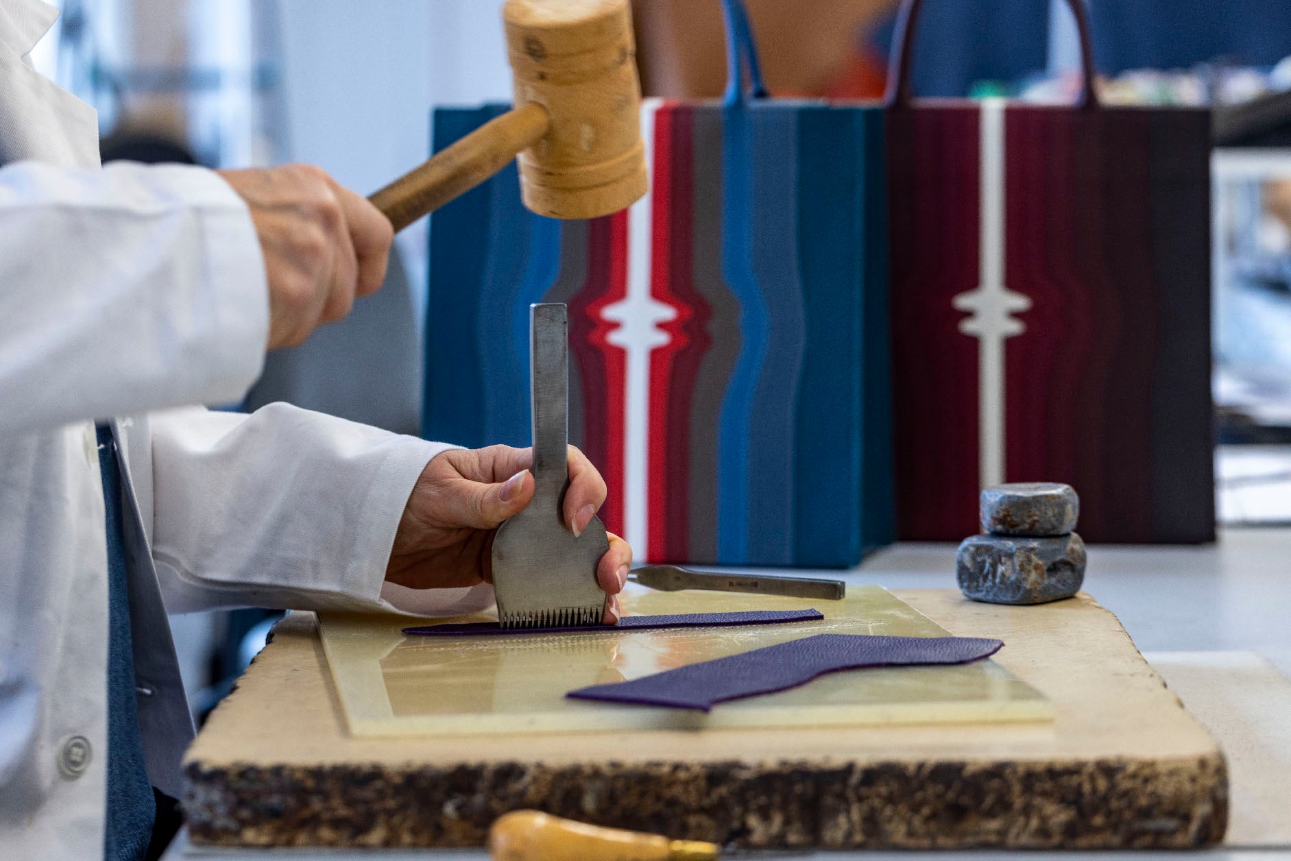 Des étapes essentielles, minutieuses, qui nécessitent parfois plus de 30 heures de travail cumulées pour un sac qui ne sera produit qu’une seule et unique fois.